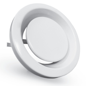 DVSER изготавливается из стали и имеет защитное порошковое покрытие. Стандартный цвет – белый (RAL 9010). Выбор других цветов возможен по запросу при заказе определенного количества. Корпус клапана имеет прокладку из ячеистого пластика и управляющий диск с винтовым шпинделем для легкой регулировки.