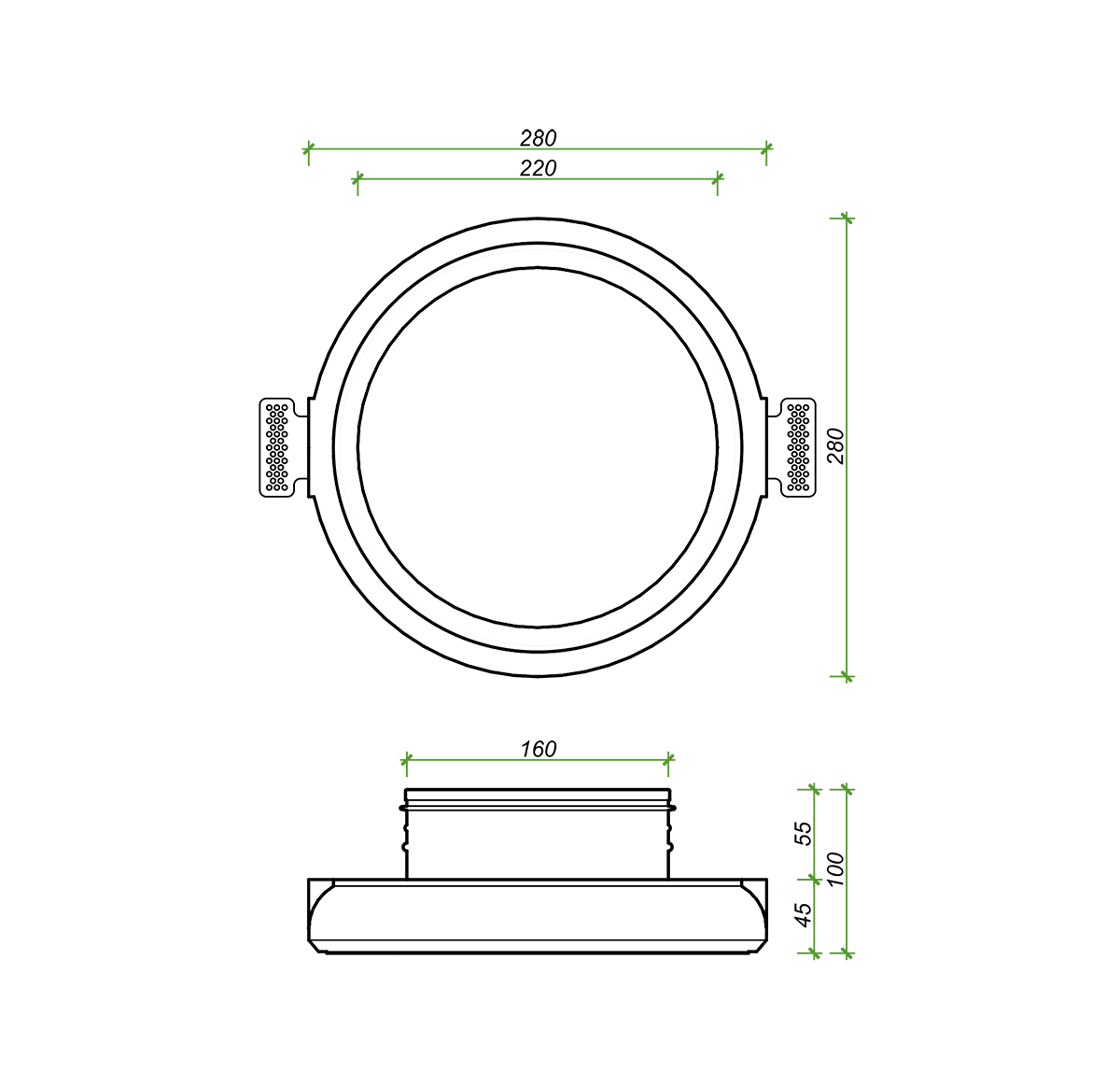 Дизайнерские диффузоры SECRET являются частью вентиляционной системы. Выполнены из гипсополимера, корпус диффузора монтируется в потолок или стену из гипсокартона, после покраски становится с потолком одним целым. Это поистине элегантное решение, сохраняющее функцию. Форма диффузоров позволяет принимать поток воздуха из вентиляционной трубы и плавно распределять его в помещение. Легко и герметично стыкуется с стандартными вентиляционными трубами диаметром 100, 125, 160 и 200 мм.