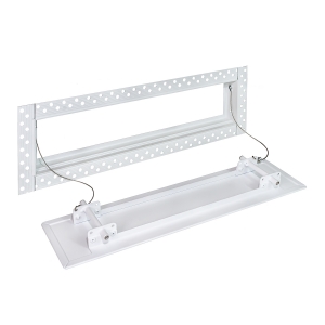 Данная решетка подходит для монтажа на любую поверхность под финишную отделку. Рама оснащена «полкой» 1,9 мм и рифлеными краями для большей адгезии финишного материала – шпатлевки, цемента. Решетка имеет съемную центральную часть с декоративным экраном. Она крепится к корпусу прочными металлическими тросиками, легко снимается для очистки и удобного обслуживания.