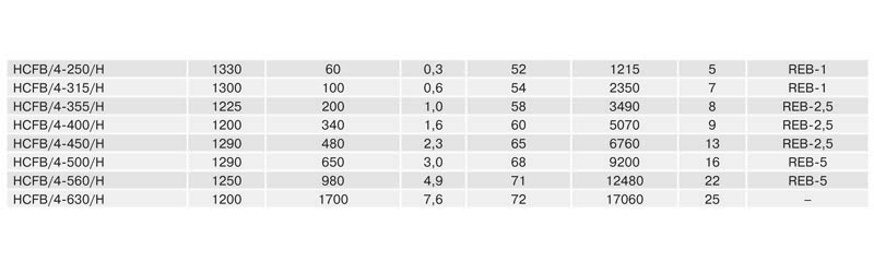 *1 Для моделей /2-315H, /2-355H и типоразмеров 800, 900 и 1000 класс защиты IP55 , электродвигатели без термозащиты.
