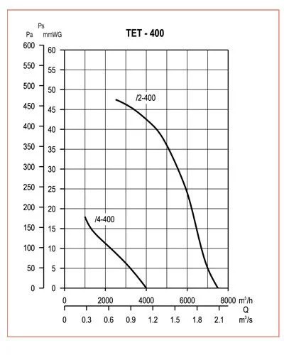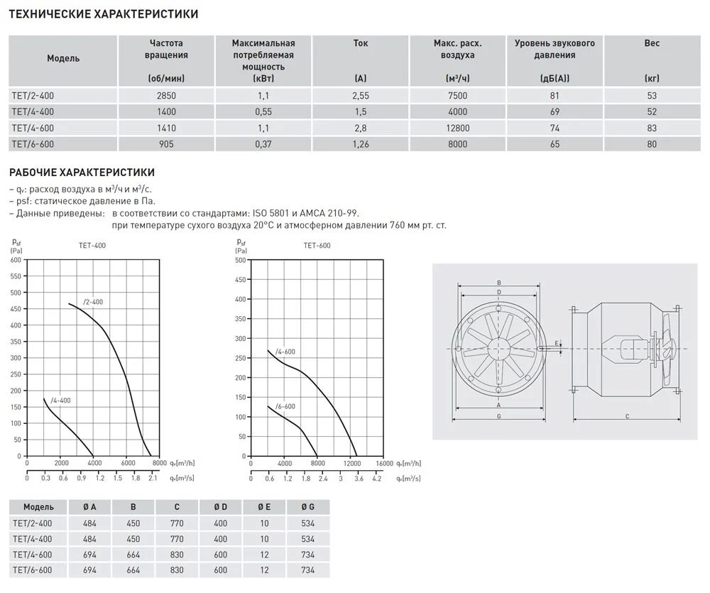 Осевые вентиляторы серии TET предназначены для продолжительной работы при температуре перемещаемого возду- ха до +150°C. Конструкция корпуса вентилятора позволяет разместить электродвигатель вне потока перемещаемого воздуха, при