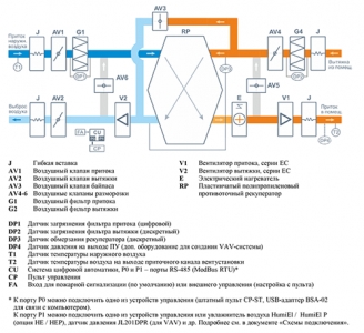 • Управление увлажнителем воздуха с пульта вентустановки.