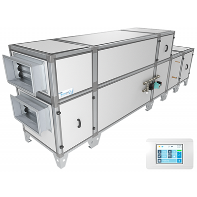 • Приточно-вытяжная установка напольного типа с противоточным пластинчатым рекуператором, системой защиты от замерзания.