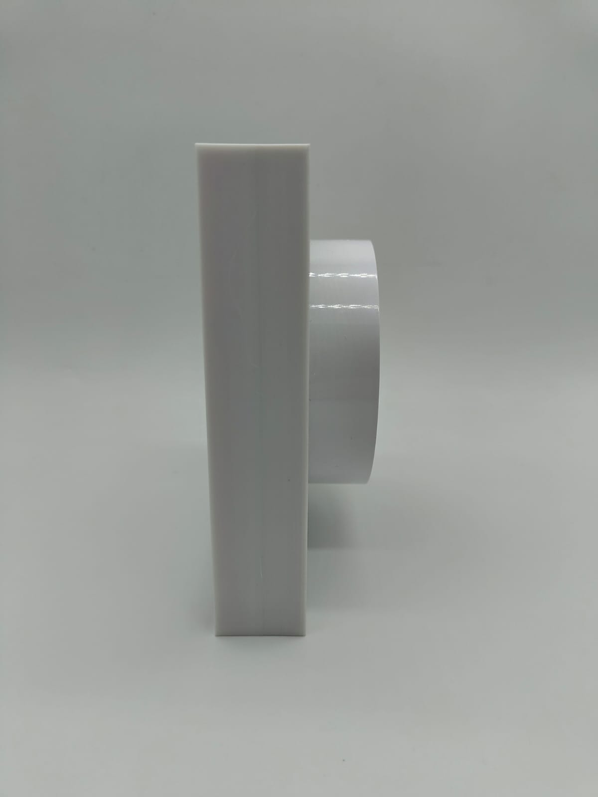 Диффузор состоит из пластикового перехода, металлической заслонкой, которой можно регулировать поток воздуха, либо полностью перекрыть его. К заслонке с помощью магнитов крепится декоративная квадратная панелька, которую можно покрасить в цвет потолка. Так же по ободку диффузора имеется надёжный двухсторонний скот марки 3М, к которому крепится полотно натяжного потолка.
