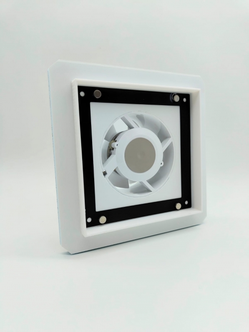 Так же диффузор состоит из металлической заслонкой, которой можно регулировать поток воздуха, либо полностью перекрыть его. К заслонке с помощью магнитов крепится декоративная квадратная панелька, которую можно покрасить в цвет потолка. Так же по ободку диффузора имеется молярная сетка, для надёжной фиксации шпаклёвки. Наши диффузоры оснащены москитной сеточкой, которая препятствует попаданию насекомых в помещение.
