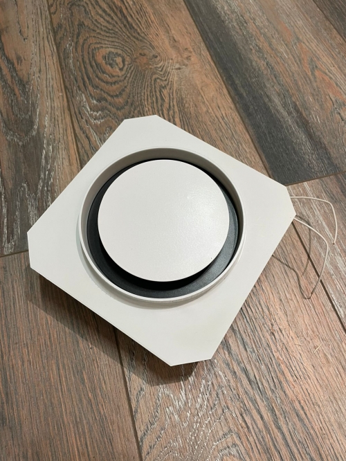 Так же диффузор состоит из металлической заслонкой, которой можно регулировать поток воздуха, либо полностью перекрыть его. К заслонке с помощью магнитов крепится декоративная круглая панелька, которую можно покрасить в цвет потолка. Так же по ободку диффузора имеется молярная сетка, для надёжной фиксации шпаклёвки. Наши диффузоры оснащены москитной сеточкой, которая препятствует попаданию насекомых в помещение.
