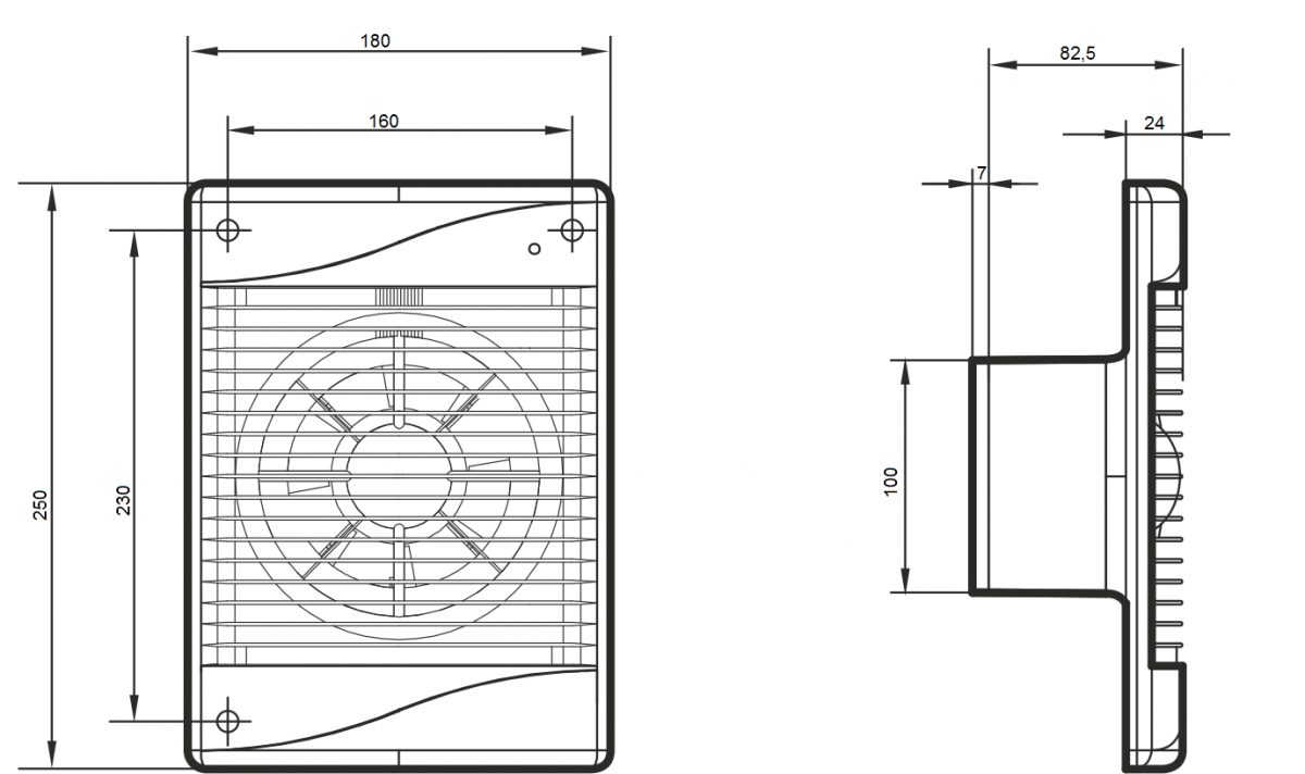 Установочные размеры вентилятора DICITI STANDARD 4C позволяют закрыть вентиляционное отверстие 180*250мм, наиболее часто встречающееся в панельных домах;