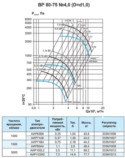 Вентилятор радиальный ВР 80-75 №4,0 (0,25кВт/1000об) Низкого давления
