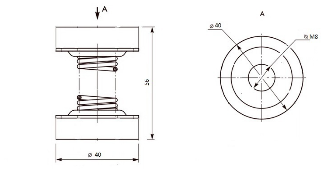 Стальные виброизоляторы представляют собой два основания с резиновыми или пробковыми накладками, между которыми размещена пружина.